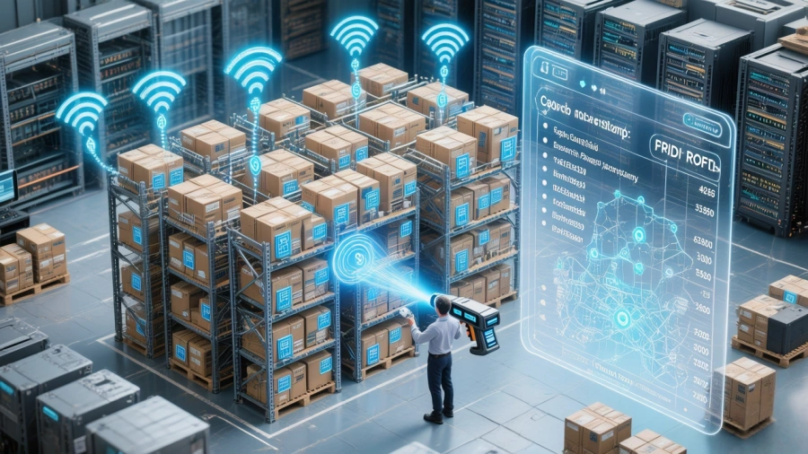 Warehouses are complex systems. Complexity demands precision. RFID provides that precision invisibly, through radio waves moving faster than any scanner beam.